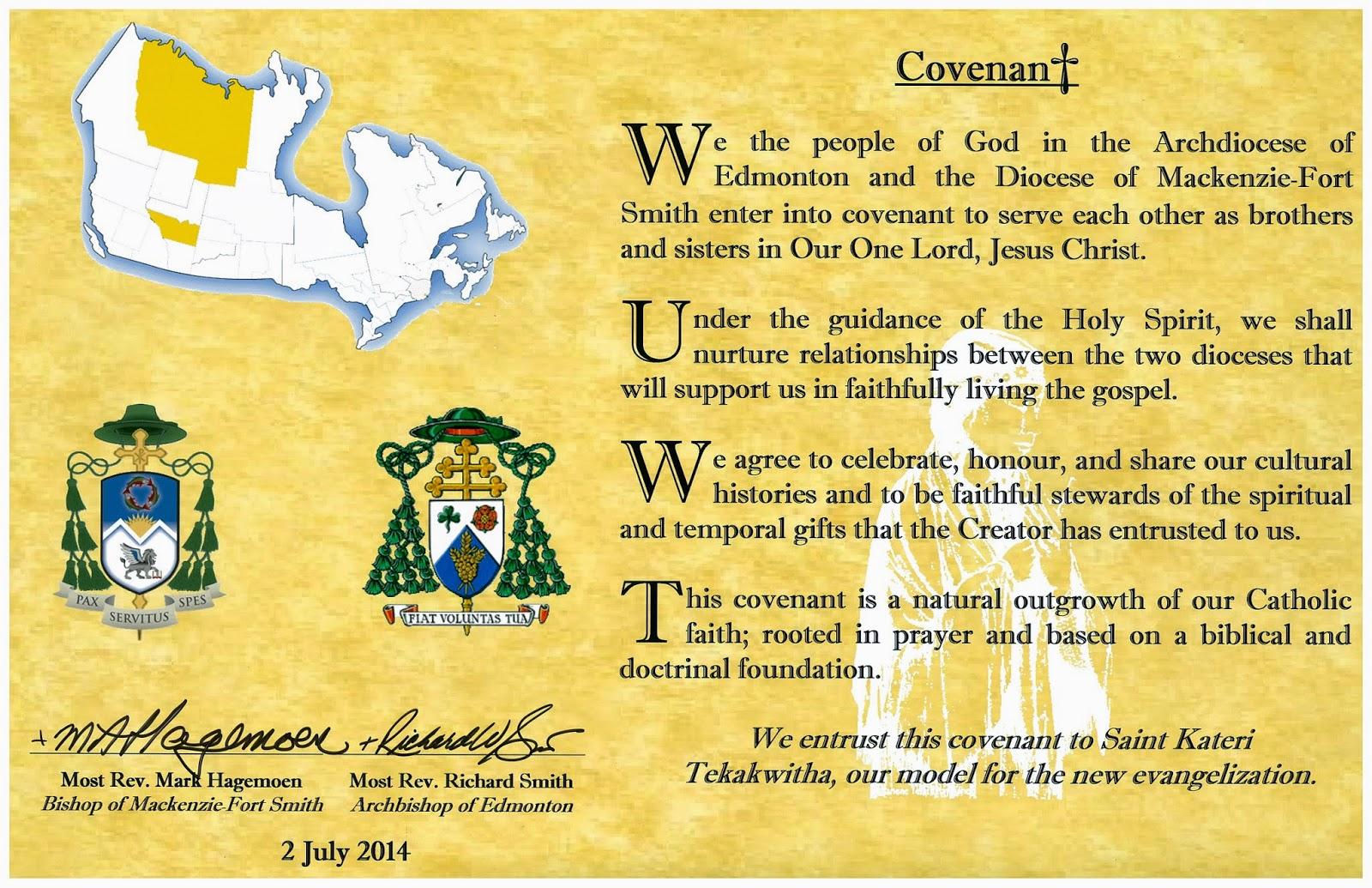 On July 2 Archbishop Richard Smith, along with Deacon Patrick Hessel and Roger Plouffe, visited Yellowknife to join in a Eucharistic liturgy which featured the formalizing of a Covenant agreement between the Archdiocese of Edmonton and the Diocese of Mackenzie-Fort Smith.