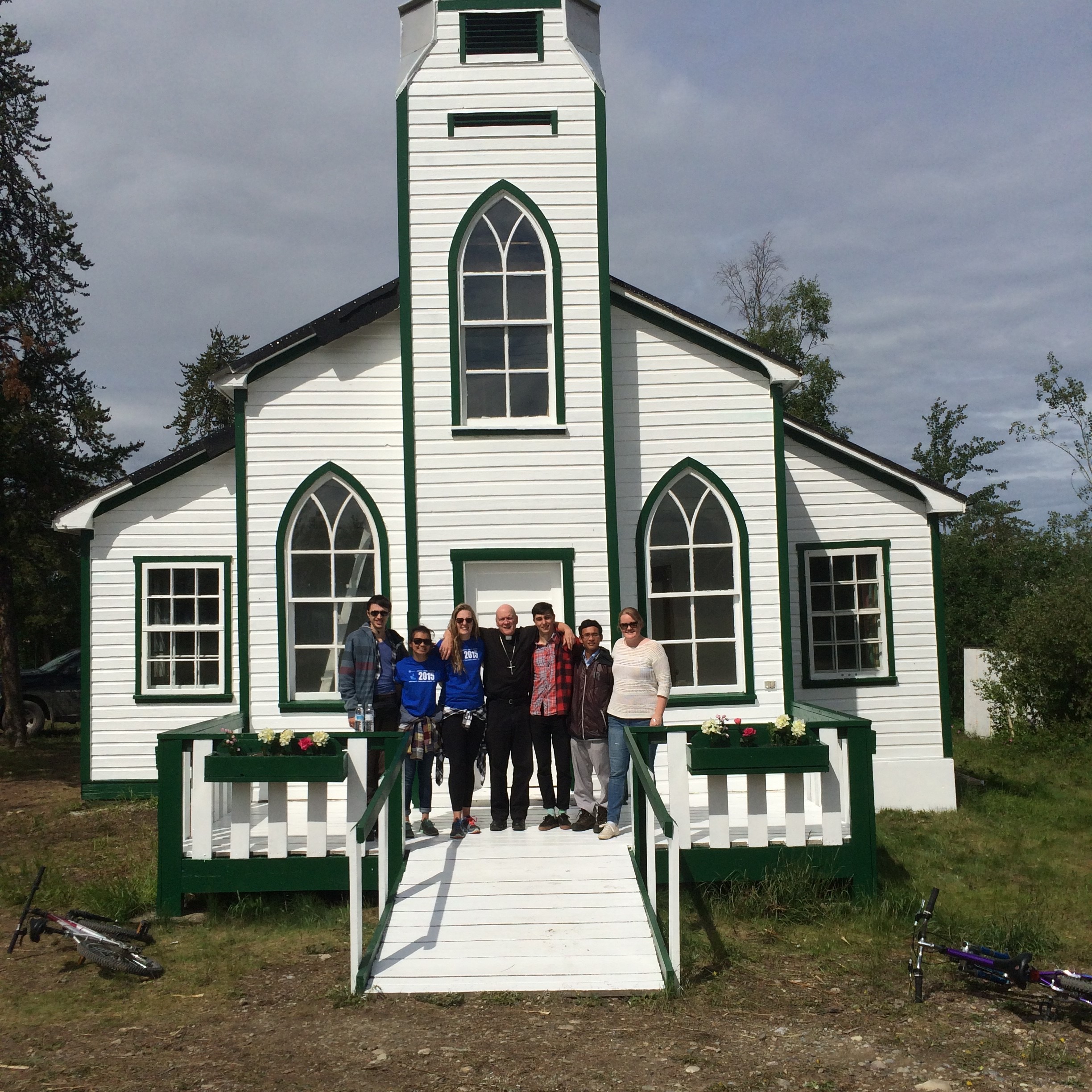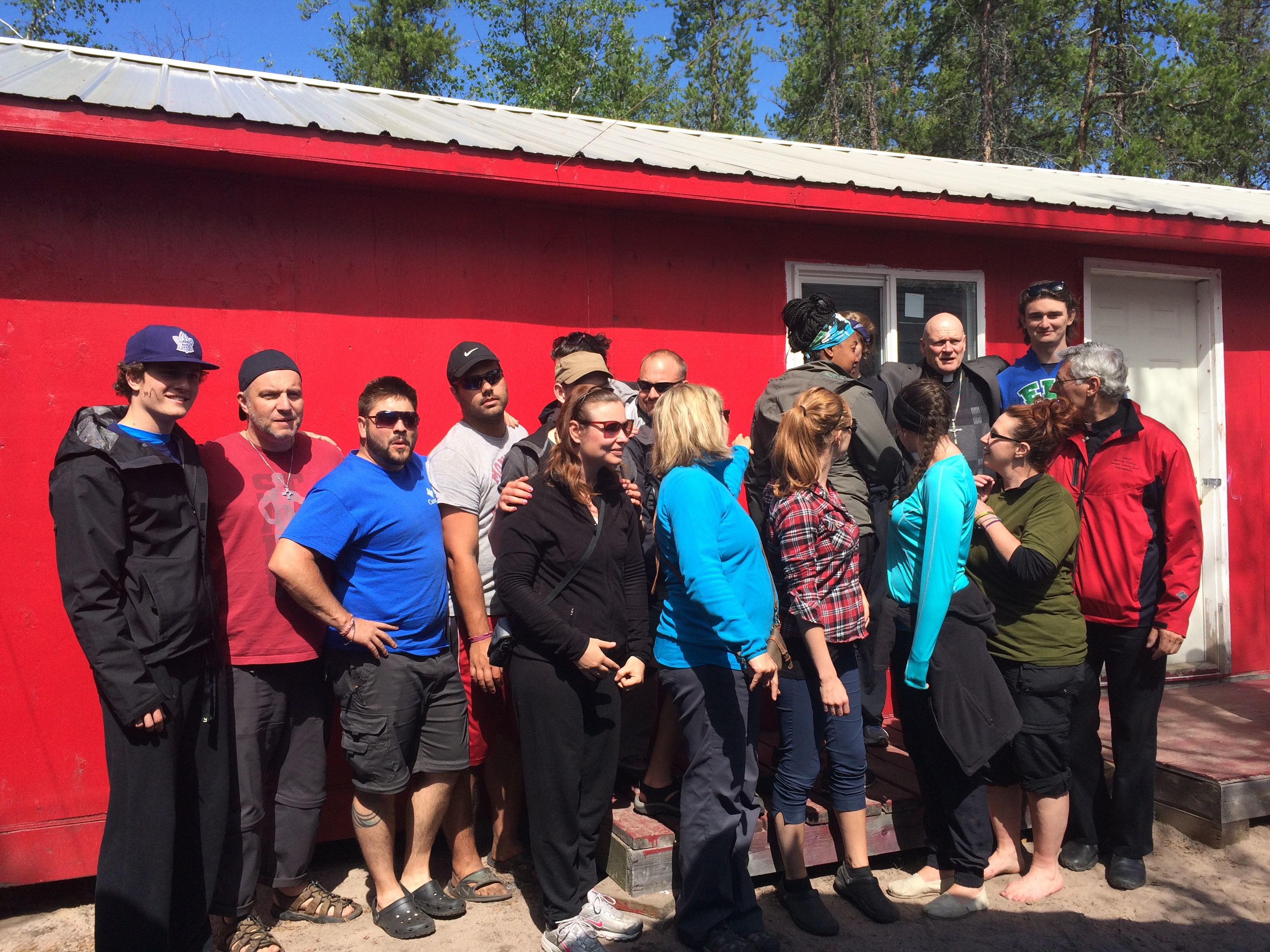 11 students and teachers from Corpus Christi College returned to the diocese in June 2015 as part of a service-learning program, which featured a focus on Aboriginal culture and issues in northern Canada. The team was led by the capable leadership of John O’Brien, SJ; Aiden Wickey, and Christina Dumont. Upon their arrival on Monday June 4, the group enjoyed an orientation and summary of the major features and issues for the Catholic Church in the north by Bishop Mark Hagemoen, Patrick Scott, and Emeritus Bishop Denis Croteau, OMI. The two week visit featured visiting two communities in the Decho region of the Diocese: Fort Liard and Wrigley, NWT. Students also visited the youth outreach center in the NWT, named “The Side Door”, located in downtown Yellowknife, and the communities of Dettah, Behchoko, and Fort Providence, and Fort Simpson.