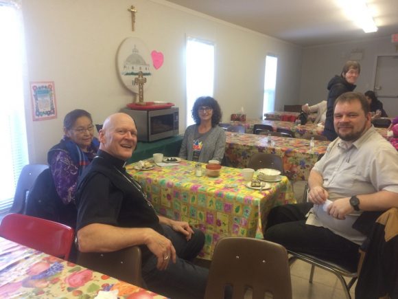 Sharing a farewell “Pot Luck” meal with Fr. Jon Hansen, CSSR, and members of Our Lady of Victory Parish in Inuvik.